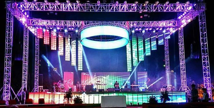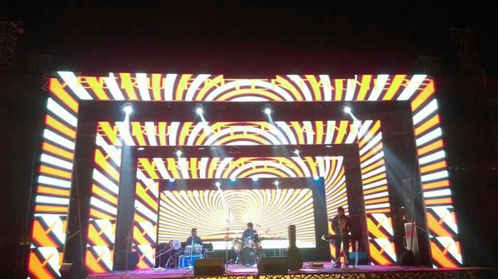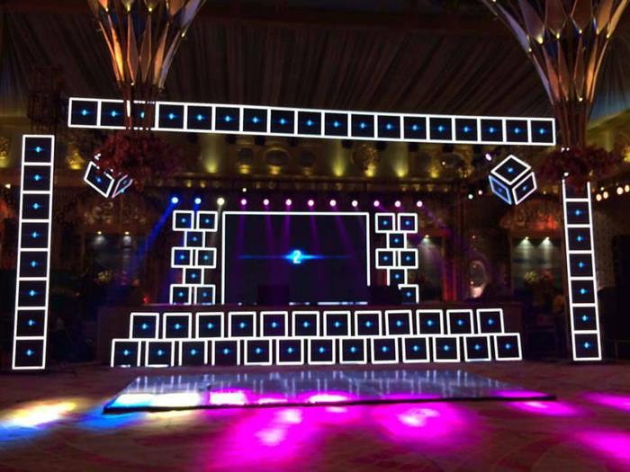 500x500 мм алюминий құйылған жарықдиодты панелі бар жабық p3,91 мм жалға берілетін жарықдиодты дисплей Үндістандағы концерттер мен үйлену тойлары үшін ғана қолданылған. Жарықдиодты дисплейдің жалпы көлемі - 150 панель (37,5 шаршы метр)