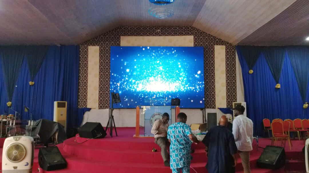 Біздің ішкі алдыңғы техникалық қызмет көрсету p6 LED бейне қабырғасы Нигериядағы шіркеуде жаңа ғана орнатылды. Артқы техникалық қызмет көрсетумен салыстырғанда, алдыңғы қызмет көрсетуші дисплейлердің көптеген артықшылықтары бар.